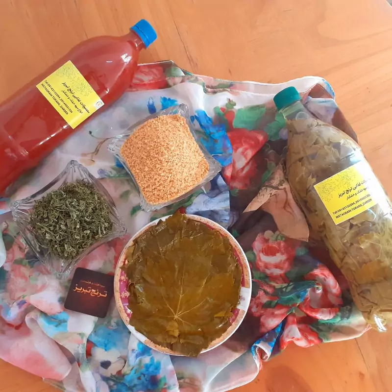 🥫قیمت رب گوجه:60 هزار تومان 🍃قیمت برگ دلمه:40 هزار تومان برگ مو شور دلمه تهیه شده از برگهای درخت مو کشمکش تبریزی ، سالم و یک اندازه، که بصورت دستچین شده بعد از شستشو داخل بطری گذاشته شده و با آب و سنگ نمک پرشده تا از فساد آن جلوگیری کرده و برگ ها طراوت و تازگی خود را حفظ کنند.